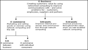 Electronic business, or e-business, is the application of information and communication technologies (ICT) in support of all the activities of business. Electronic business methods enable companies to link their internal and external data processing systems more efficiently and flexibly, to work more closely with suppliers and partners, and to better satisfy the needs and expectations of their customers. E-business involves business processes spanning the entire value chain: electronic purchasing and supply chain management, processing orders electronically, handling customer service, and cooperating with business partners. E-business can be conducted using the Web, the Internet, intranets, extranets, or some combination of these. Electronic Business is a broader definition that includes buying and selling, plus servicing customers, collaborating with business partners and conducting electronic transactions within an organization.