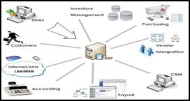 It integrates The information across functions and provides a set of tools for planning and monitoring the various functions and processes. It helps integrating business activities as inventory control, order tracking, human resources, finance, production, sales etc.