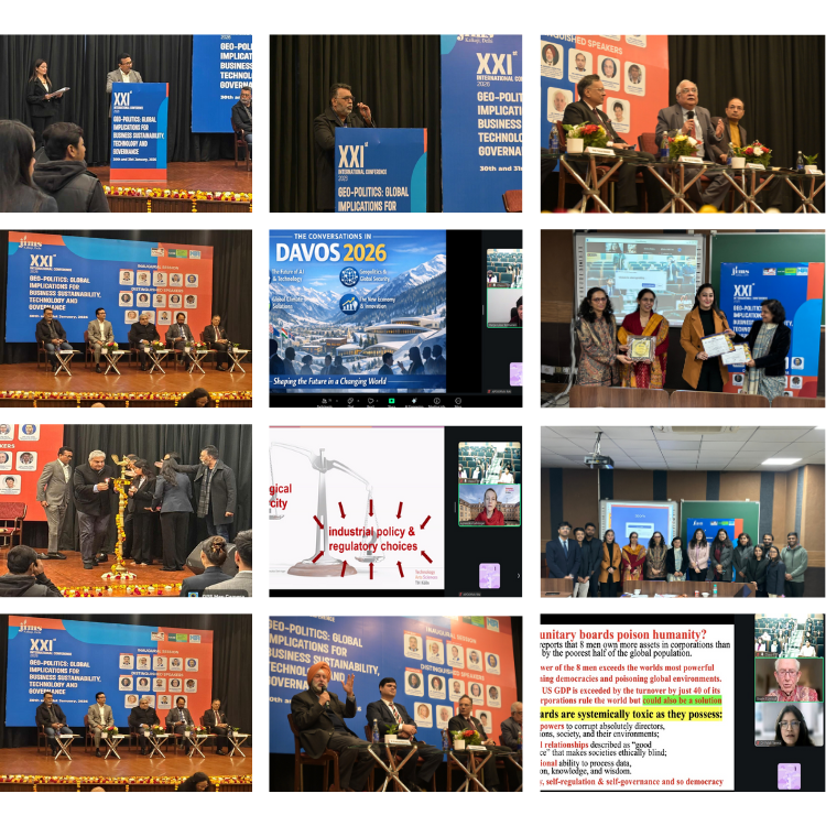 Jagannath International Management School hosted its 20th International Conference on 22nd-23rd January 2025 at PHD Chamber of Commerce, focusing on “Promoting Inclusive Growth: Addressing Socio-economic Disparities.” Esteemed guests, including Mr. Neelesh Sah, IA&AS, and Mr. Jayant Singh, IRTS, delivered inspiring insights. Dr. Amit Gupta’s inaugural address highlighted sustainability and innovative pathways to economic growth. The event featured a panel discussion led by global experts, emphasizing sustainability in governance and business transformation.