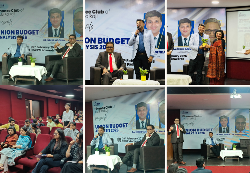 Jagannath International Management School (JIMS), Kalkaji, organized a Finance Talk Show on “Union Budget Analysis 2026” on 26th February 2026 at 1:30 PM in the JIMS Auditorium under the aegis of Money-Tech – The Finance Club for the PGDM Batch 2025–27.